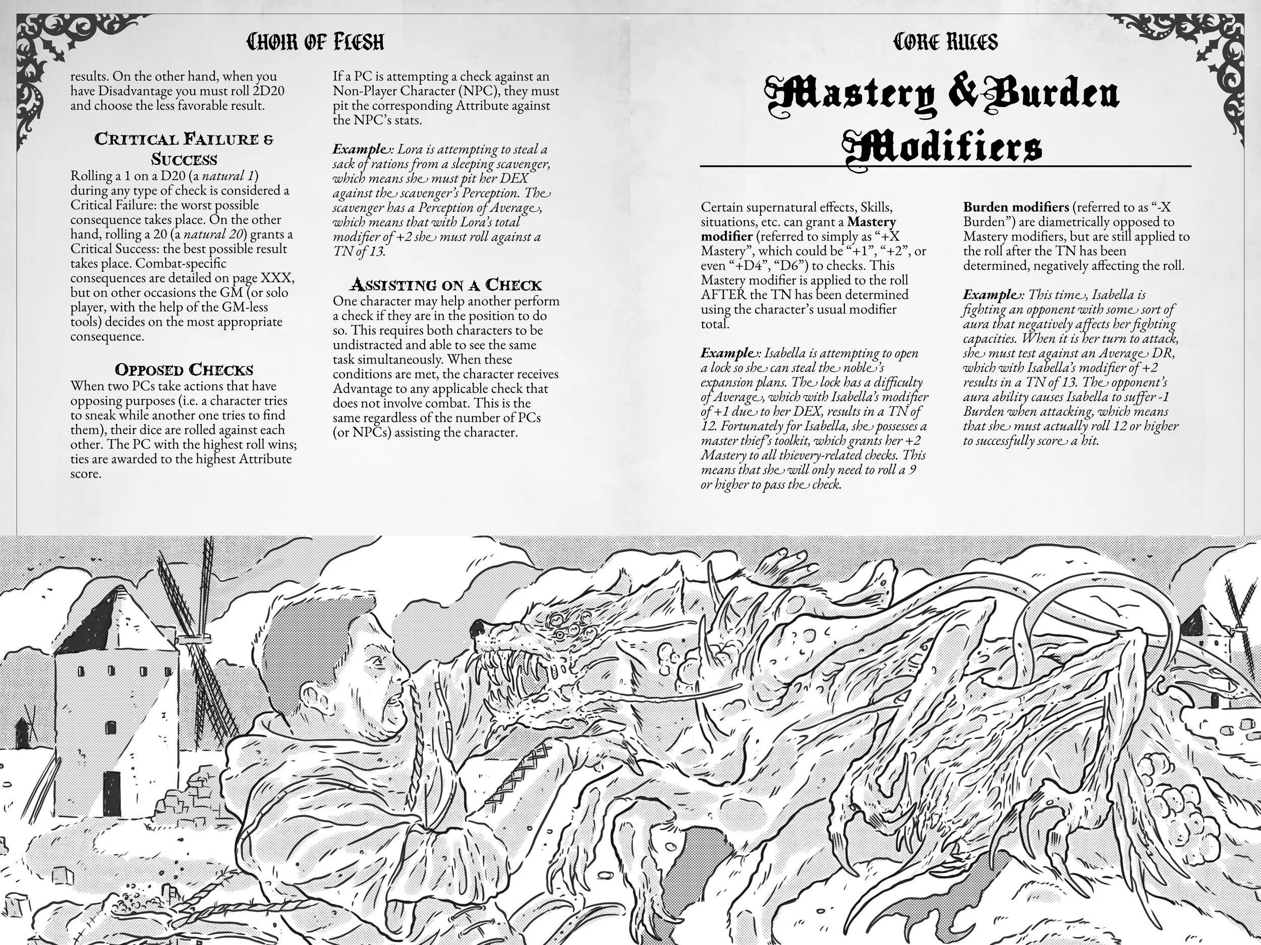 Easy for Game Masters: For those wanting to play the game as a Game Master, there’s a section dedicated to running the game, with tools to generate Undertakings on the fly and plenty of advice about creating a dark story where hope is the only thing that keeps the players alive.